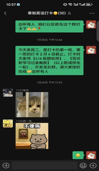 词汇是语言学习的基石。一方面,各教研室布置了四、六级词汇的背诵任务。教师为员工提供《四级词汇闪过》、《六级词汇闪过》等学习材料激发员工的记忆潜力,引导员工利用词根、词缀,图像故事等进行记忆,增强记忆深度。充分利用百词斩等App,促进员工学习。制定合理的学习打卡计划和相应的检查措施,以确保员工保质保量完成任务。