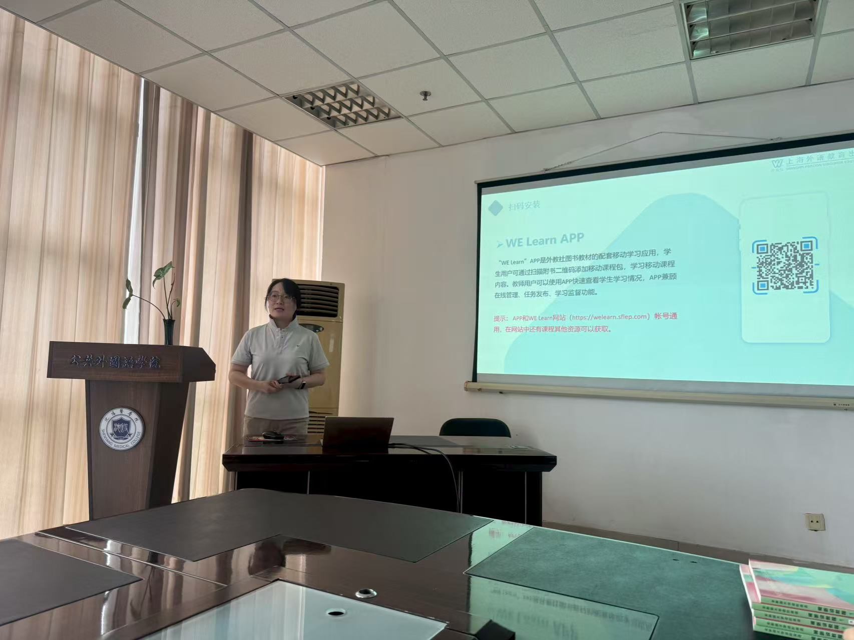 为推动外语教学资源与技术深度融合,8月27日上午,上海外语教育出版社辽宁教育发展中心负责人陈晓颖老师应邀到访公司,并在beats365官网入口A601会议室面向公司外语教师做了一期外教社最新研发的外语课程智能学习软件“WE Learn”的平台介绍与应用培训。